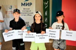 Какие «шаги» проделывает пшеничное зерно, чтобы превратиться в хлеб или булочку? Команды отрядов состязались на скорость сложения цепочки от поля до стола. Быстрее всех справлялись сельские ребята, но и горожане старались не отстать!