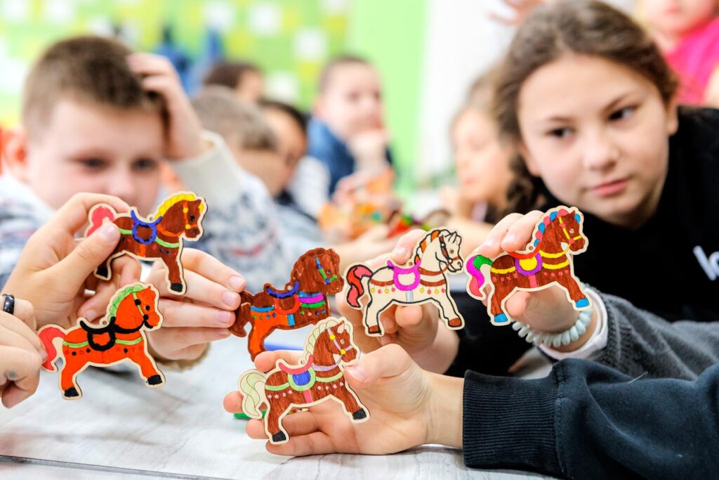 Эти симпатичные деревянные лошадки, расписанные ребятишками в Мастерской Деда Мороза, станут теплым воспоминанием о проведенных каникулах, о друзьях из своего отряда и, кроме всего, не стоит забывать, что всё созданное своими руками в Волшебном МИРе чудес имеет магическую силу и, как поётся в песне, «при первой неудаче, только стоит, только стоит оглянуться, к нам лошадки деревянные прискачут»!