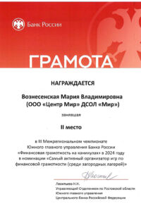 Сертификат участника СДО 2025 Вознесенская М.В.