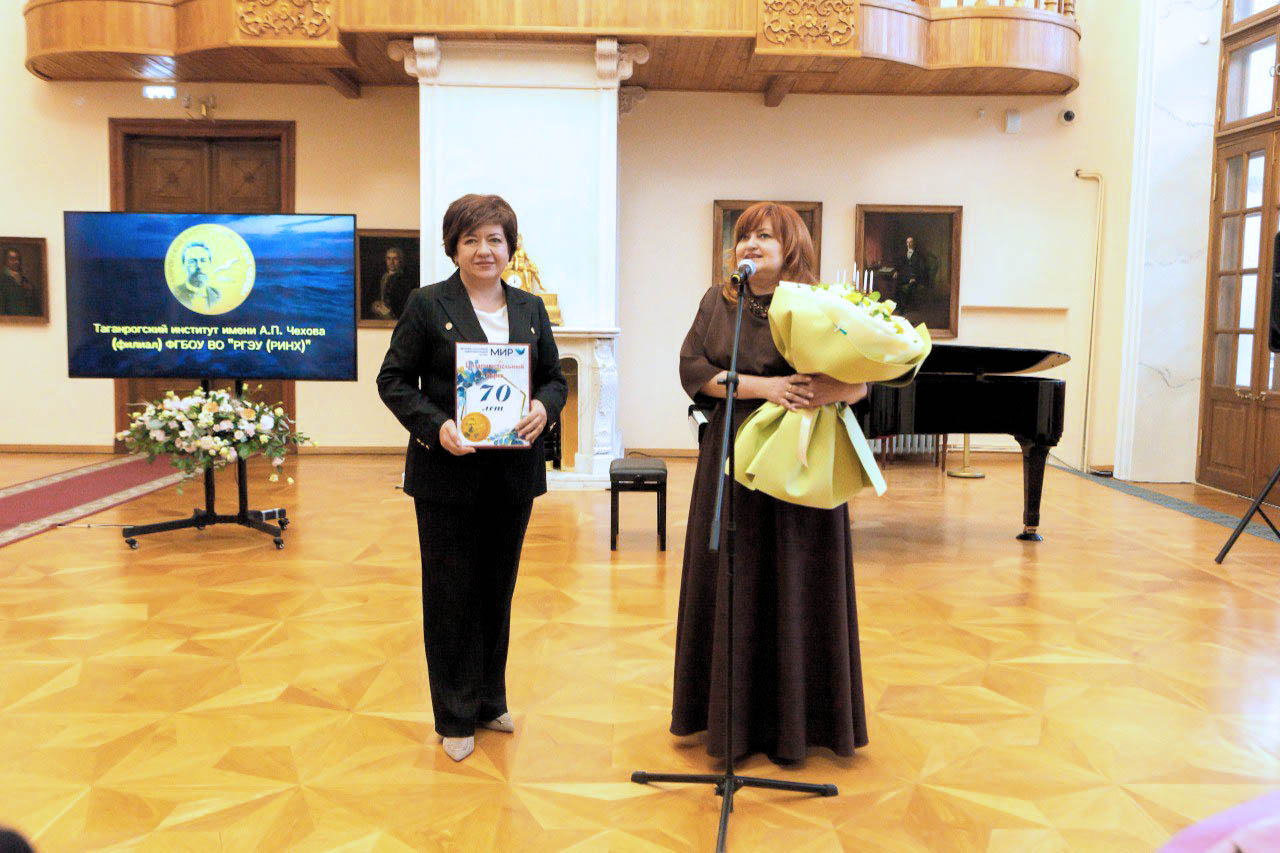 На торжественном заседании Ученого совета Таганрогского института имени А.П. Чехова директор Детского санаторного оздоровительного лагеря «Мир» Татьяна Николаевна Косоголова поздравила юбиляров от всего коллектива Центра детских и юношеских программ.