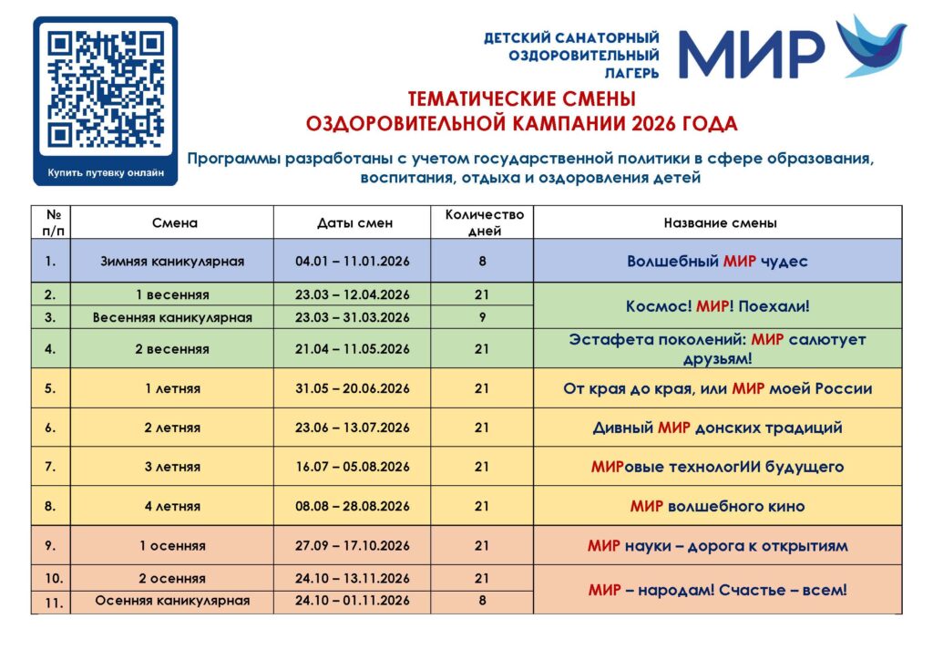 ДЕТСКИЙ САНАТОРНЫЙ ОЗДОРОВИТЕЛЬНЫЙ ЛАГЕРЬ «МИР»